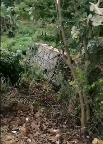 公共视频画面显示,5月17日下午1时25分,一辆农用车在行驶过程中突然偏离方向驶到左边车道上,对向行驶而来的大客车来不及刹车,两车头撞在一起,随后大客车冲下路基,农用车车头顿时面目全非。