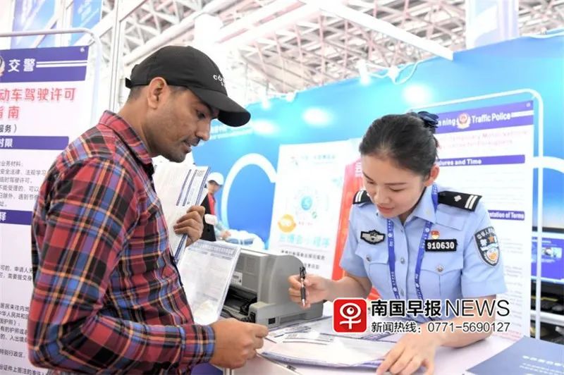 ▲南宁市车管所给外籍人员核发临时驾驶证。