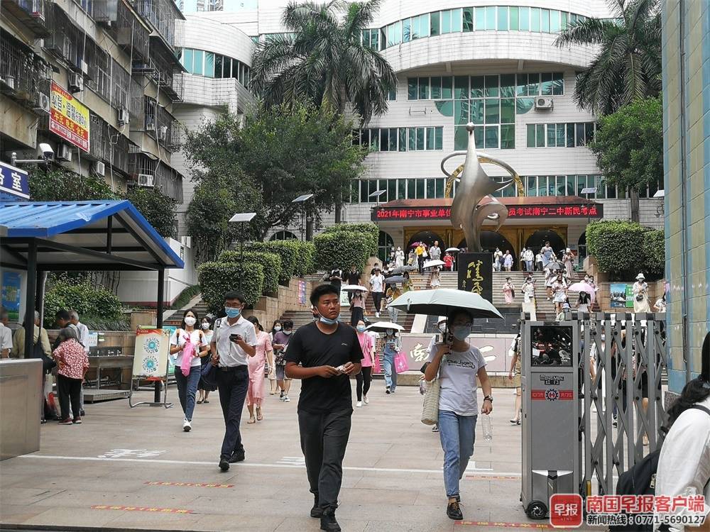 当日中午12时许,在南宁市新民路南宁市第二中学,结束考试的考生纷纷走出考场,有人认为题目容易也有人认为比较难。