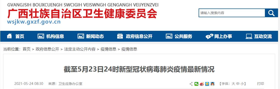 5月23日0至24时,全区无新增确诊病例、疑似病例和无症状感染者。现有境外输入确诊病例6例,境外输入无症状感染者2例。今日解除密切接触者2例,现有密切接触者5例。全区累计报告确诊病例275例,累计治愈出院267例,正在治疗6例,死亡2例。
