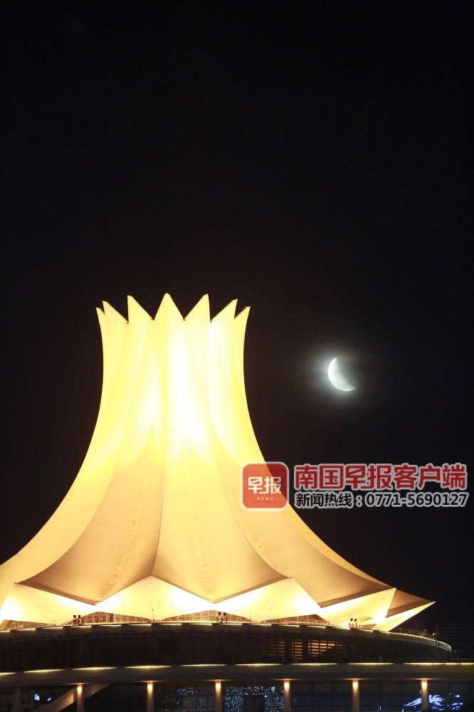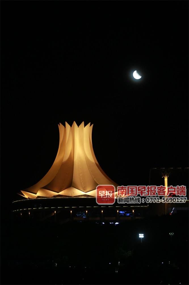 ▲月食在南宁国际会展中心朱瑾花厅附近出现。