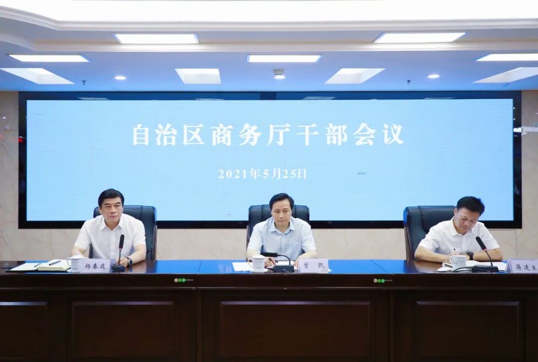 5月25日下午,自治区商务厅召开干部大会,自治区党委组织部副部长曾凯出席会议并宣布自治区党委决定:蒋连生同志不再担任自治区商务厅党组书记职务,杨春庭同志任自治区商务厅党组书记。