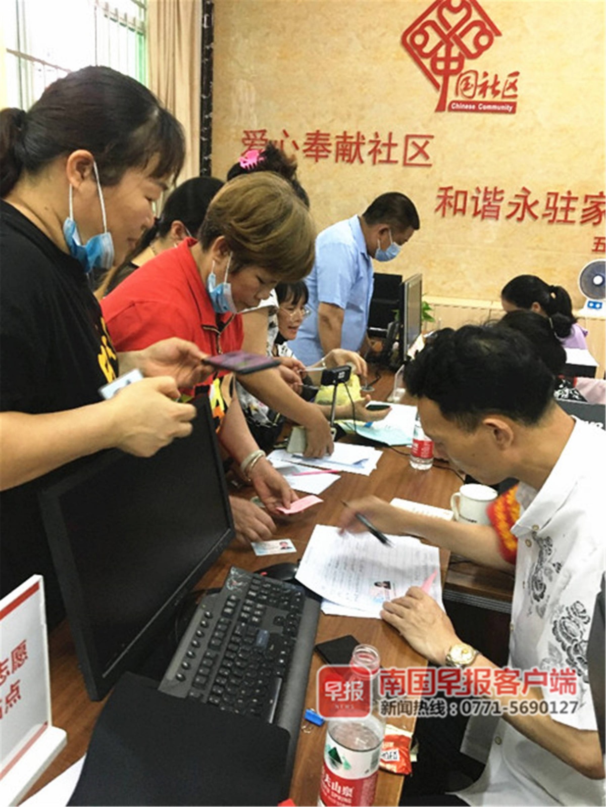 ▲居民在五村岭社区居委会领取疫苗预约凭证。南国早报客户端记者雷小琴摄