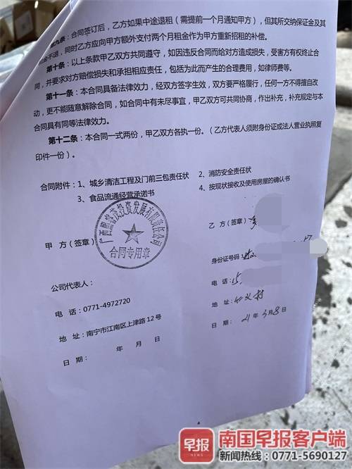 在一间销售大米的商铺门口,20多名经营户代表聚在一起,正在商量如何向有关部门提出他们的诉求。经营户罗先生说,他是今年3月份与熙睿茂公司签下协议,交了一年租金3万多元和押金1万元给对方。但店铺才经营了2个多月,就突然有人来强拆,“后来才知道这块地2年前就到租期了,但签约时开发商瞒着我们。现在要求退钱,对方却以各种理由推脱。”
