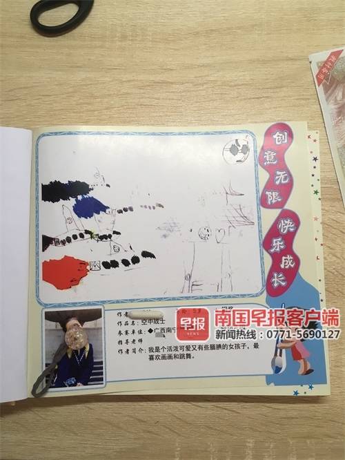 ▲家长“闻西”得到的精装作品集上,有孩子的作品、个人照片及简介等。