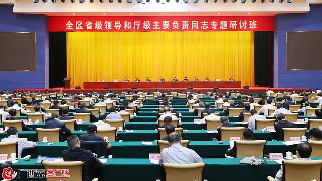3月19日,全区省级领导和厅级主要负责同志学习贯彻党的十九届五中全会精神专题研讨班在南宁结业。这是大会现场。广西日报-广西云客户端记者 梁凯昌 摄