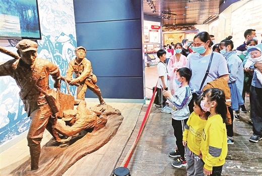 “五一”假期首日,全州县红军长征湘江战役纪念馆里人流涌动,前来感受红色文化的游客络绎不绝。据初步统计,当日游客超过3万人次。陈静 邓琳 摄
