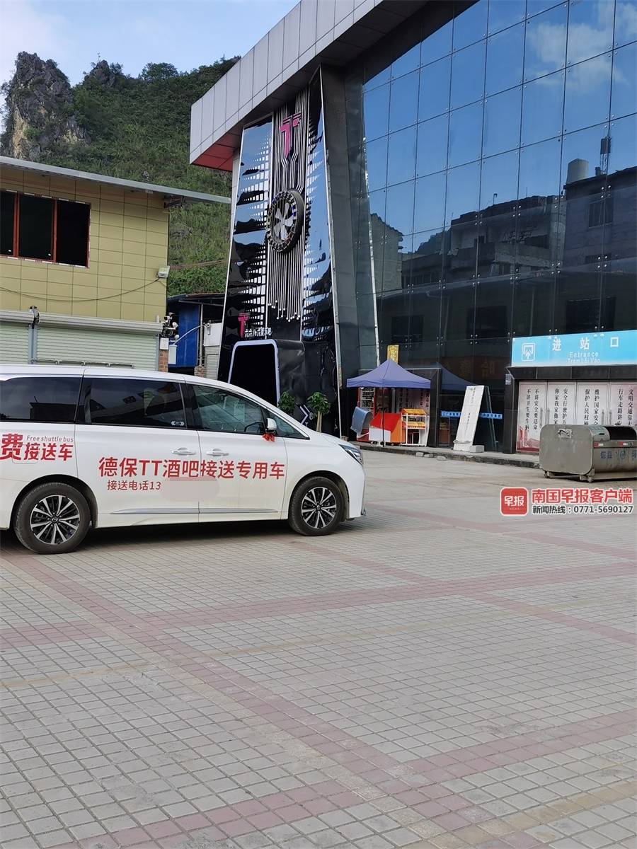 5月28日下午,记者在德保汽车客运站看到,居民反映的“TT”酒吧实际名叫“TT六六八六音乐吧”(以下简称“TT”酒吧),位于客运站靠内的一侧,站前广场还停有两辆酒吧接送专用车。