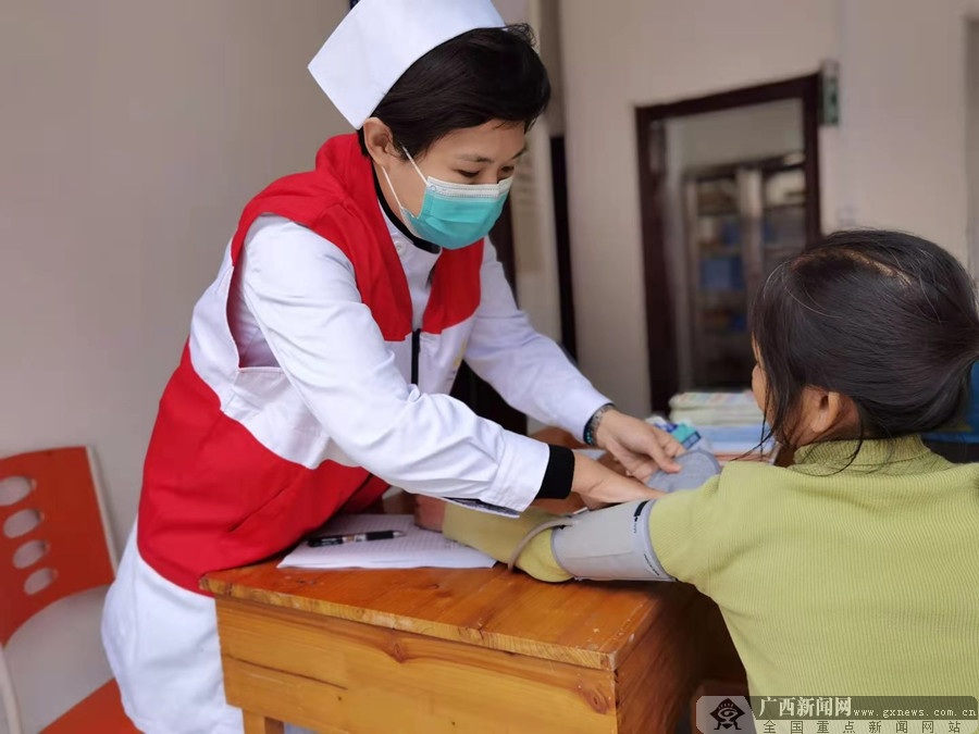 “脱下军装后,我成为自治区人民医院的一名护理工作者。但军人的责任与担当早已在身上烙下了深深的印记,为人民的健康服务依旧是我不变的使命与追求。我也成为中国南丁格尔志愿护理服务总队广西壮族自治区人民医院分队中的一员,多次深入农村、社区、学校、敬老院等地开展义诊、健康体检、健康科普讲座、为社区看困难户送温暖等活动。”何红艳说,2020年10月30日,自治区政府办公厅第七秘书处党支部、自治区红十字会机关党支部、自治区人民医院机关后勤党支部组织联合赴大化瑶族自治县七百弄乡弄京村开展“爱心义诊助脱贫,友好共建促发展”主题党日活动。何红艳作为领队带领中国南丁格尔志愿护理服务总队自治区人民医院分队人员参与了此次下乡义诊活动。
