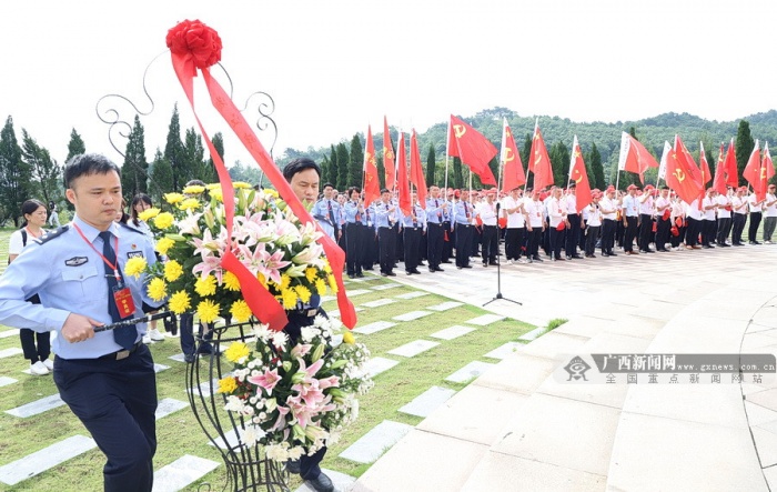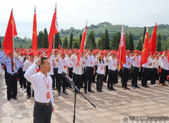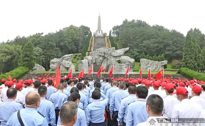 当日中午,专列到达兴安县后,学员们马不停蹄来到红军长征突破湘江烈士纪念碑园进行参观,并举行军团组建、授旗仪式。接着,大家前往光华铺阻击战旧址、界首镇红军堂、界首红军街、界首渡口旧址瞻仰学习。次日,大家赴全州县,来到红军长征湘江战役纪念园及红军长征湘江战役纪念馆,到凭吊广场向革命先烈敬献花篮,重温入党誓词,瞻仰“红军魂”浮雕,并到石林、湘桂古道、云和庵救护所遗址、连心树广场、天坑舍生涯、紫薇园参观学习。