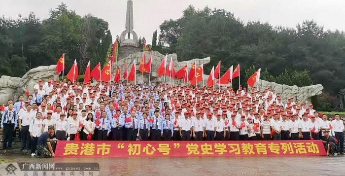 广西新闻网贵港6月5日讯(记者 覃铮)乘坐红色专列,探访革命遗迹,追寻红色印记,现场学史增信……6月3日早上,贵港市“初心号”党史学习教育专列从贵港火车站发车,驶往桂林。来自该市的近500名党员、预备党员和发展对象乘坐此专列,“打卡”兴安红军长征突破湘江战役遗址、全州红军长征湘江战役纪念馆等红色革命圣地,开展为期一天半的现场教学活动,接受革命传统再教育。