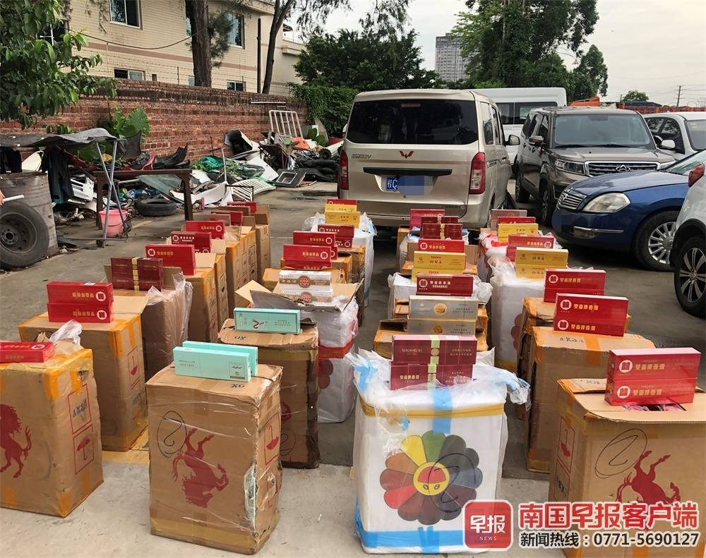▲面包车上装有很多箱走私香烟。