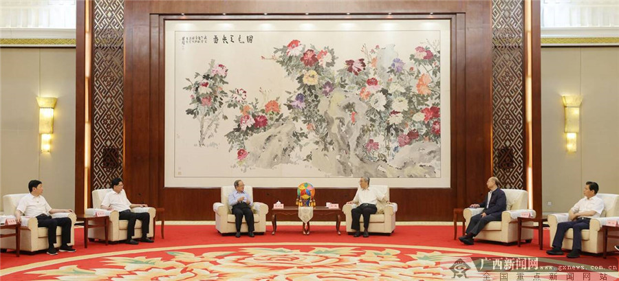6月4日至7日,全国政协副主席马飚率全国政协提案委员会调研组来桂开展督办调研。6月4日,自治区党委书记、自治区人大常委会主任鹿心社,自治区党委副书记、自治区主席蓝天立,自治区政协主席孙大伟在南宁拜会马飚。记者 梁凯昌 摄