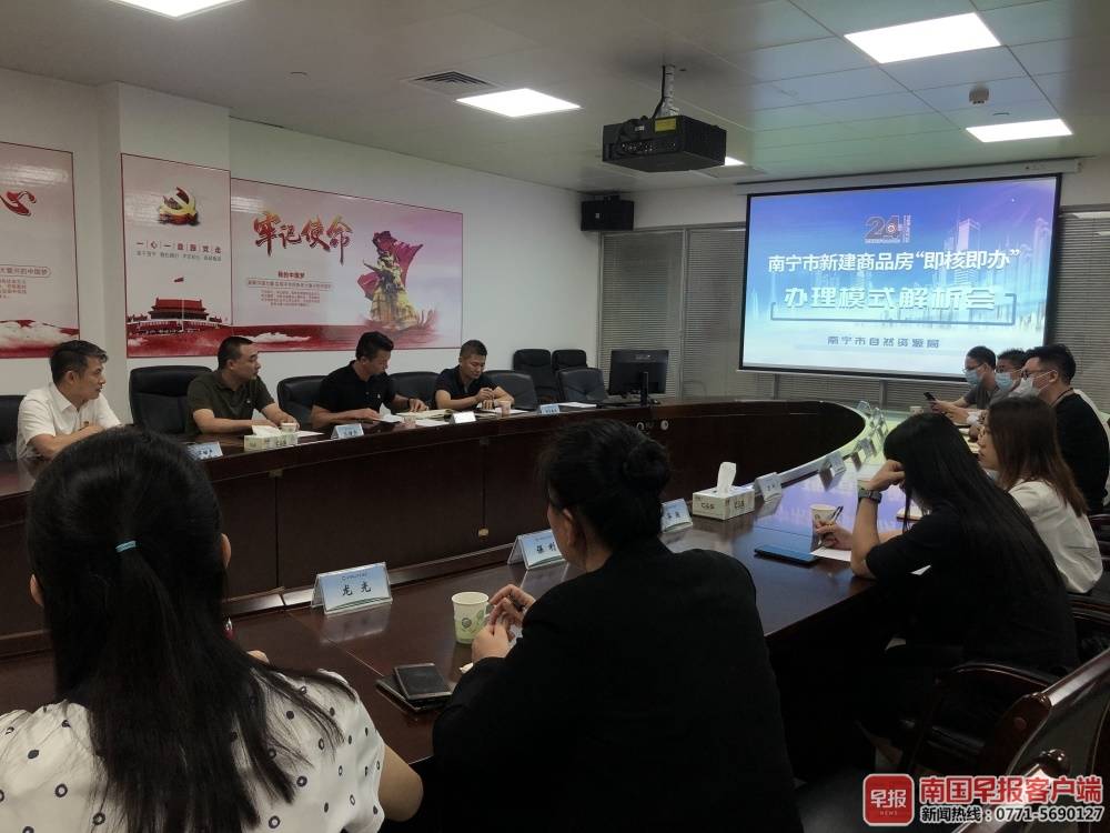 6月7日,在南宁市自然资源局召开新建商品房“即核即办”办理模式解析会上,南国早报客户端记者获悉,南宁市的“即核即办”已实现整个楼盘的“交证等交房”。目前,已经有房地产企业与南宁市不动产登记中心签订协议,市民只要在该公司南宁市本级区域内建设的项目购房,都可以实现“交房即交证”。