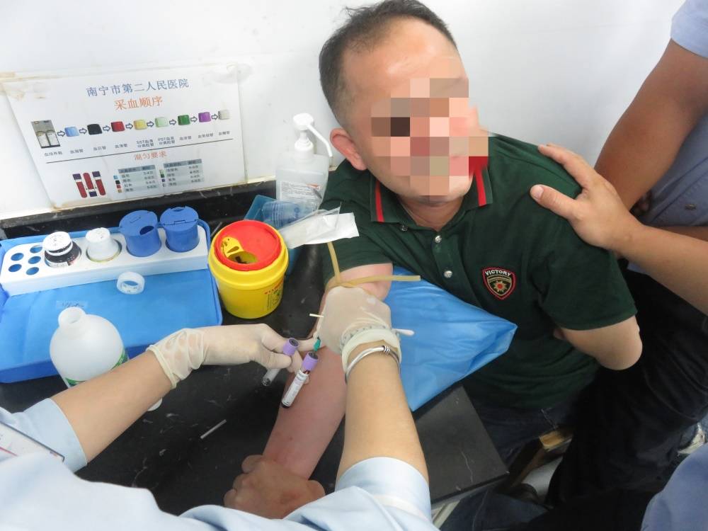 ▲民警带周某到医院抽血检验。
