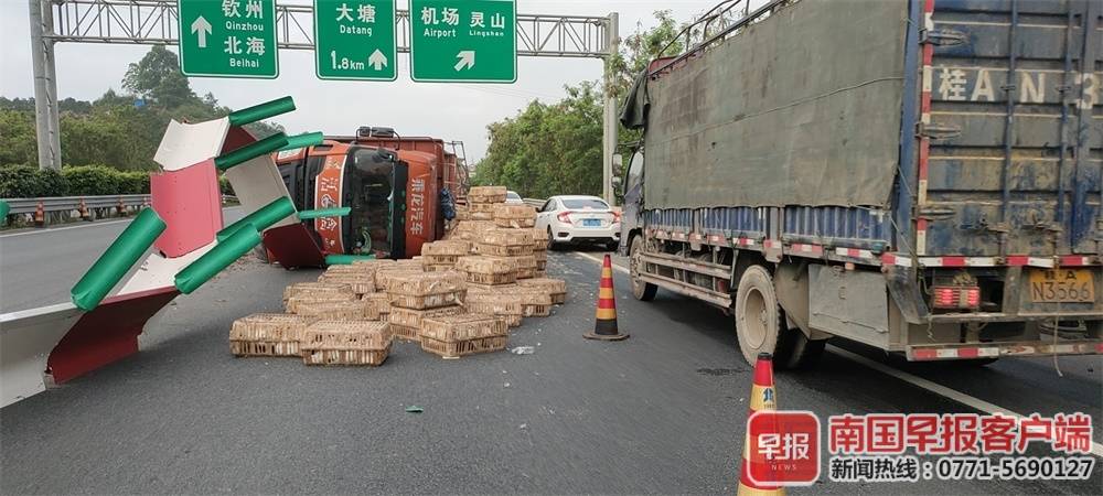 视频 | 广西高速上大货车侧翻,数千只鸭子被滞留