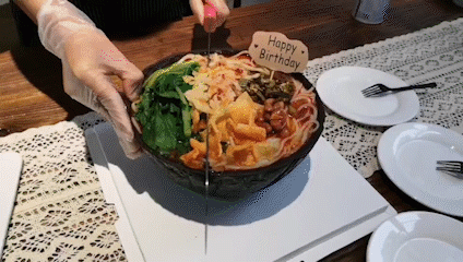 今年5月,一位嗦粉长大的柳州妹,还大胆研发了螺蛳粉蛋糕。酸辣可口的螺蛳粉和甜美的蛋糕会碰撞出什么奇妙反应?好奇心驱使,让这款傍着螺蛳粉的蛋糕又登上了话题热搜榜。