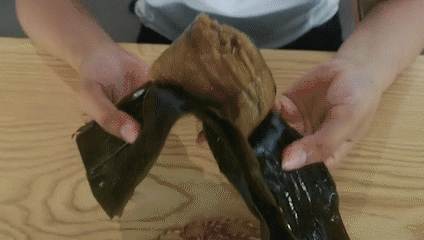广西螺霸王食品有限公司推出的螺蛳粉粽子,从外观上看就是平平无奇的普通粽子。