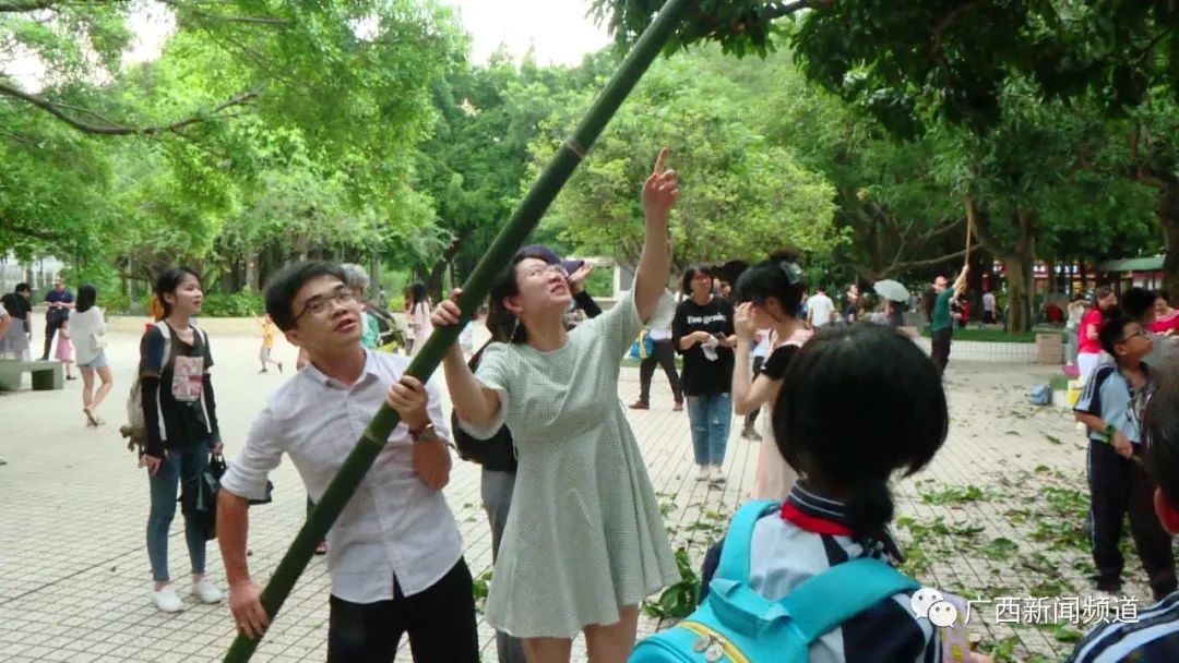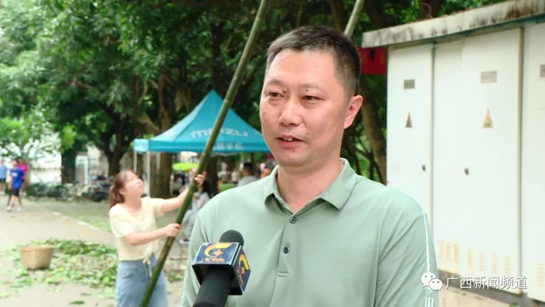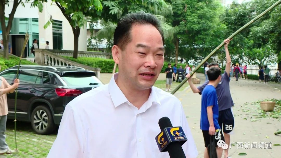 广西民族大学后勤管理处教室场馆服务中心副主任管祖文介绍,现场大家热情高涨,还有外国的留学生也参与。