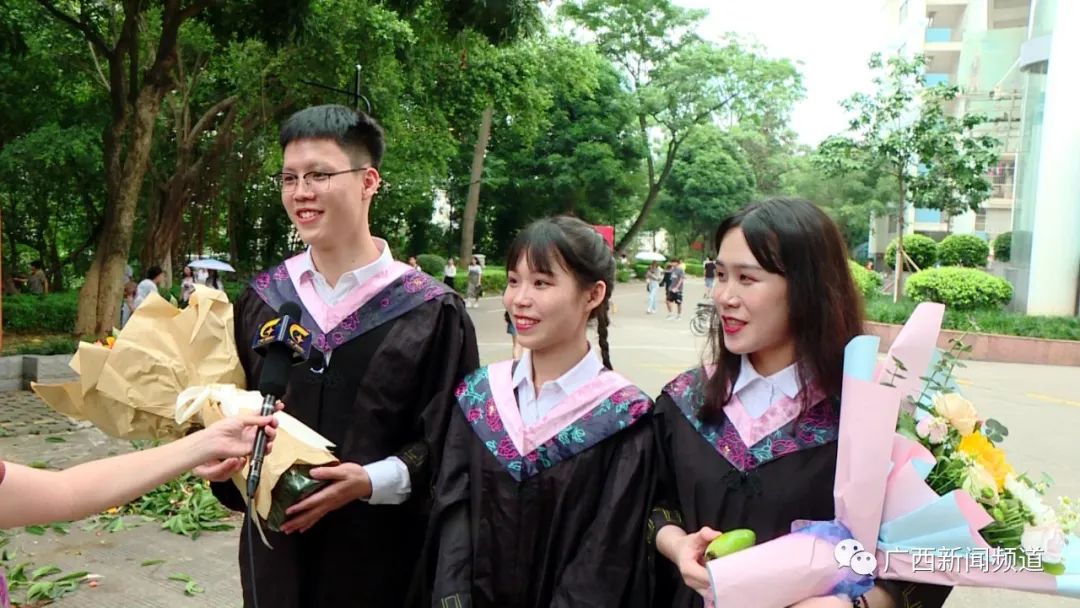 广西民族大学2017级毕业生黄炎文说:这丰收的果实也代表着我学业的丰收,也代表着我未来进入社会的开始,非常感谢母校。