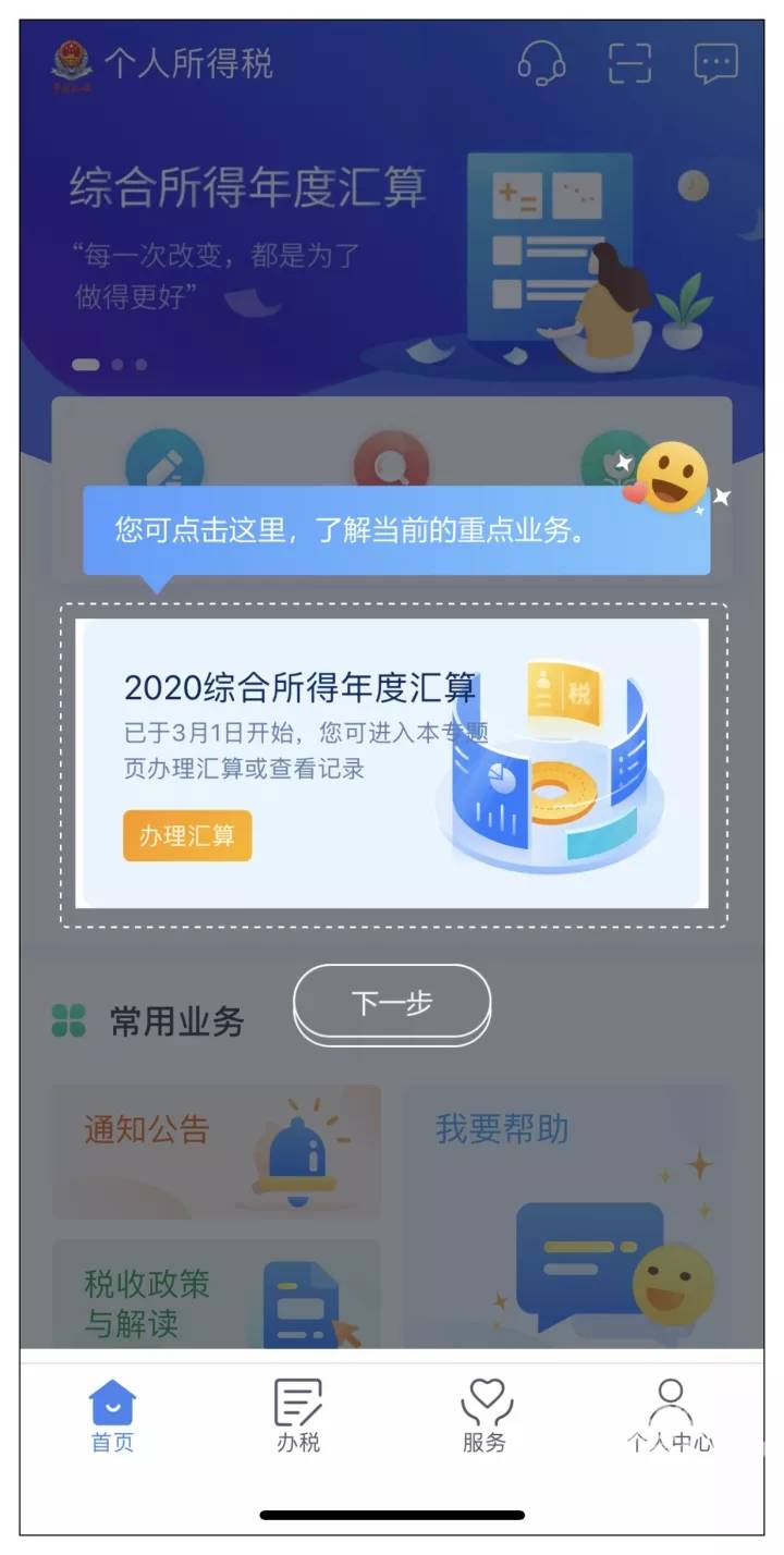 登录个税App,进入“综合所得年度汇算”时,如果2019年度尚未完成申报,要先完成该年度汇算申报,才可以申报2020年度汇算。