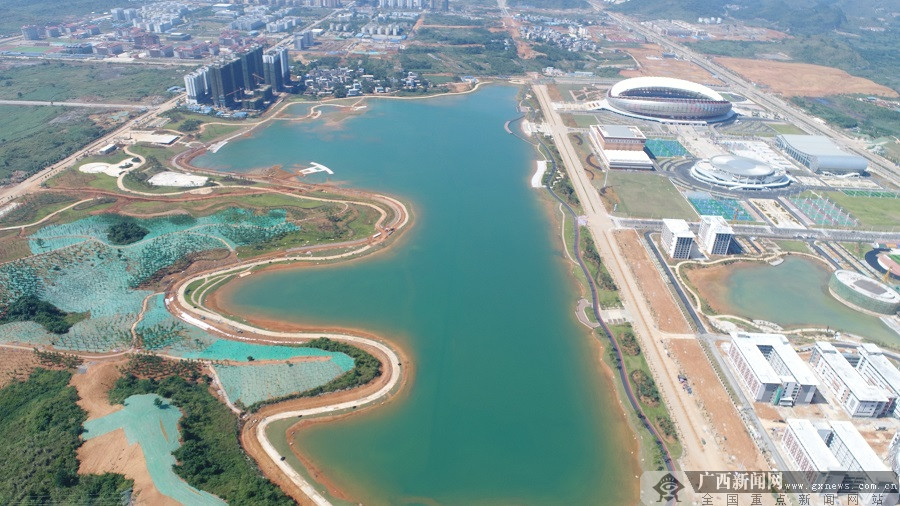 崇左市金龙水库生态修复工程施工后完成蓄水,水体恢复情况(航拍图)。广西生态环境厅供图