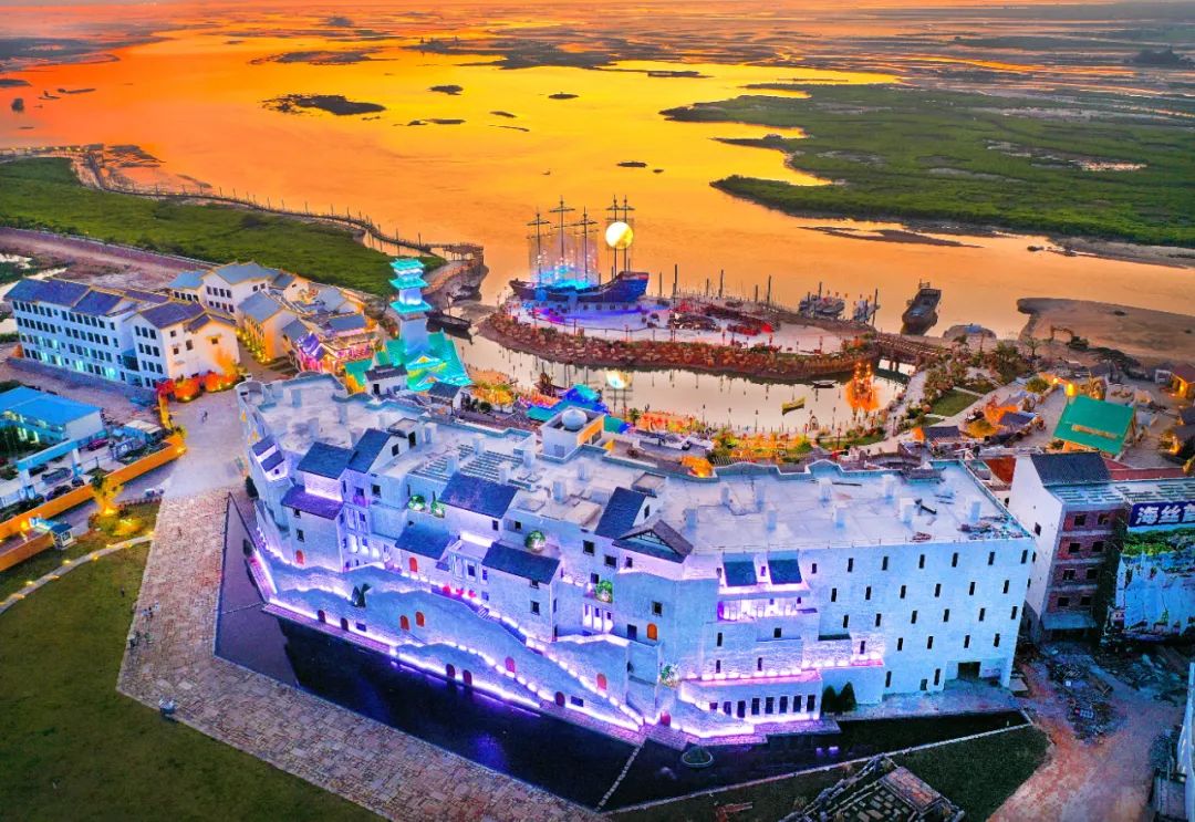 ▲近日,位于合浦县廉州湾畔的海丝首港滨海度假旅游区,霞光映照在古汉代国际码头,美不胜收。广西日报记者 周军 摄