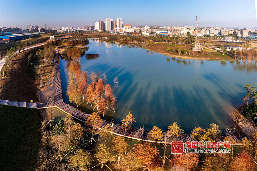 你在北方的寒夜里看大雪纷飞,我在南方的阳光里感受四季如春。进入12月冬季,南宁市区和郊外多种秋冬植物呈现翠绿、金黄、橘红的渐变色,如红色的糖蜜草、红色的落羽杉等,给南宁的冬天增添了一抹热情的气息。