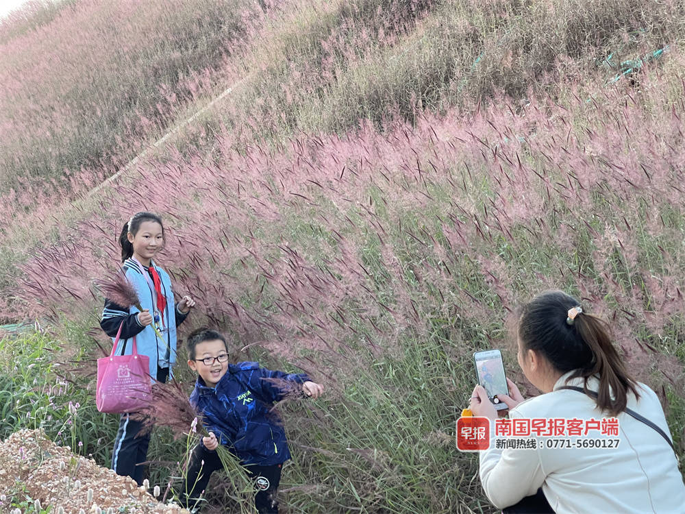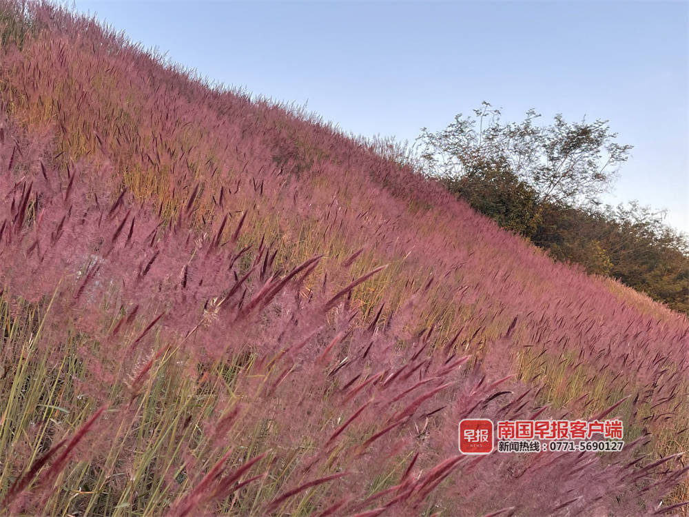 据了解,由于糖蜜草对土壤肥力要求非常低,是草地改良的不二选择,在很多新路段边坡上,都能看到这种红色的糖蜜草。在南宁市邕宁区利福路的边坡上,同样也是这样 一片红色的糖蜜草,吸引了附近的居民纷纷打卡。