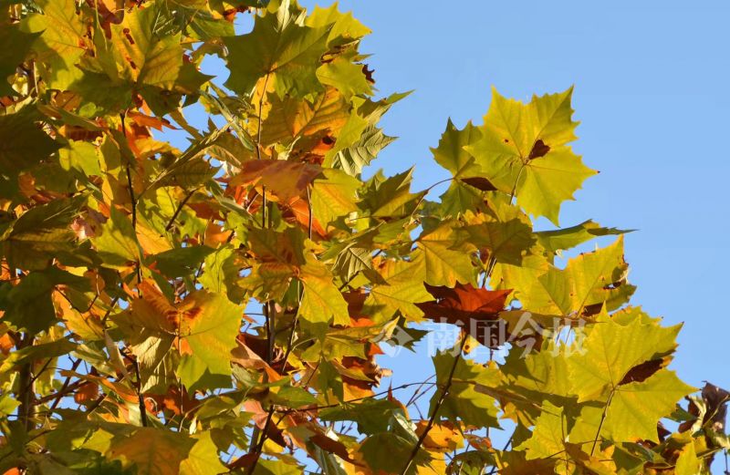 初冬时节,柳州市区一些路段沿线的法国梧桐树,叶片开始由绿转黄,呈现出明显的季相变化。在阳光的照射下,法桐树叶随风摇曳,熠熠生辉,闪耀着金色的光芒。