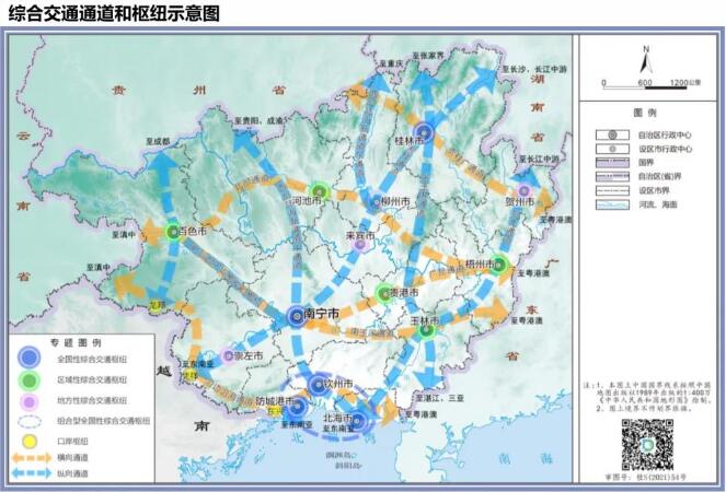 综合交通运输体系建设方面,《规划》指出推进构建高效综合立体交通网。落实国家综合立体交通网,大力支持构建“五横六纵”的综合交通运输通道和多层级分工协作的综合交通枢纽体系,促进全区基本形成“3213出行交通圈”和“123快货物流圈”。
