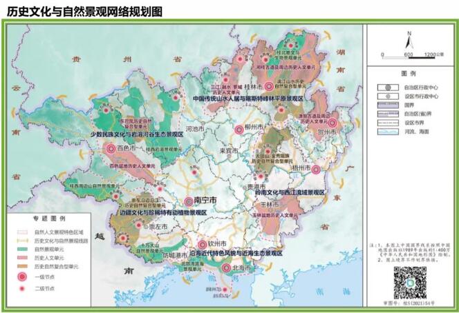 此外,构建自然、生态、文化、景观交织一体的自然人文景观特色网络。构建以G219最美沿海沿边公路、红水河魅力游道为主的、近3000公里文化遗产线路网和绿道网组成的魅力空间网络,以文塑旅、以旅彰文,提升格调品位,努力创造宜业、宜居、宜乐、宜游的良好环境,实现对历史人文与自然审美融合区域的整体保护与优化发展,全面提升广西山水文化品牌影响力。