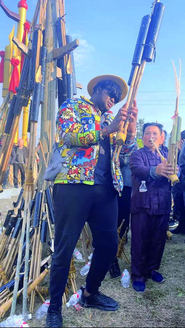 博密在体验柳州少数民族的风情与文化。受访者供图