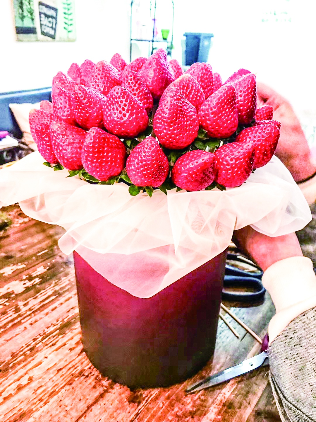记者在网购平台搜索“草莓花束”发现,不少店铺的月销量少的有几百,多的有上千。其中,位于南宁市的“花仙子花屋”淘宝店铺客服告诉记者,同城购买可以送货上门,“顾客下单之后,会有专人专车配送”。客服表示,价格为188元的“36颗网红草莓花束”销量较好。此外,记者在商品详情页面发现,车厘子、橙子、榴莲等花艺礼盒也在同步售卖。
