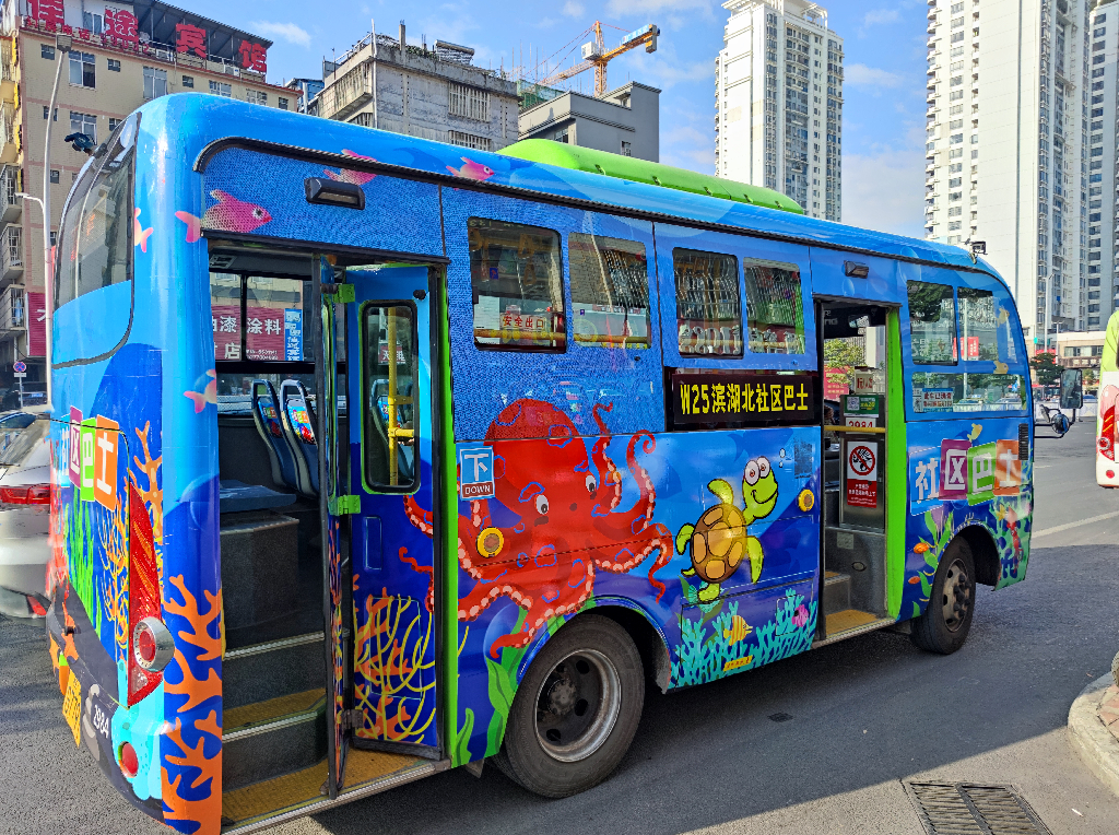 社区巴士已经融入市民的日常生活,在解决社区居民地铁接驳需求的同时,还将进行“颜值”焕新升级,以新形象亮相在南宁街头。12月8日,社区巴士推出海洋巴士和森林巴士两种全新主题风格,以醒目亮眼的外观“扮靓”邕城,打造流动的靓丽风景线。