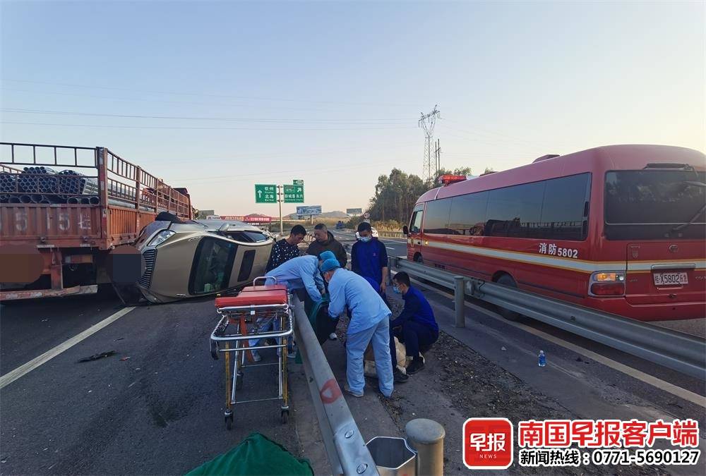 防城港4名消防员出差归队路遇车祸 现场"出警"救两人