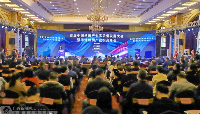 广西新闻网宜州12月10日讯(记者 覃铮)12月10日,首届中国丝绸产业高质量发展大会暨河池丝绸产业投资峰会在河池市宜州区举行。会议就我国丝绸产业发展趋势进行分析,并对蚕桑生物科技应用、丝绸全产业链培育、丝绸品牌发展新概念等主题进行探讨和交流,还把充满活力与商机的河池茧丝绸产业向广大客商做了推介。这既是中国茧丝绸产业的一次盛会,也是河池投资发展的一件盛事。商务部驻广西办事处,自治区工信、农业农村、商务、投资促进等部门,以及河池市、宜州区和中国纺织工业联合会、中国丝绸协会、广西丝绸协会等单位领导出席会议。