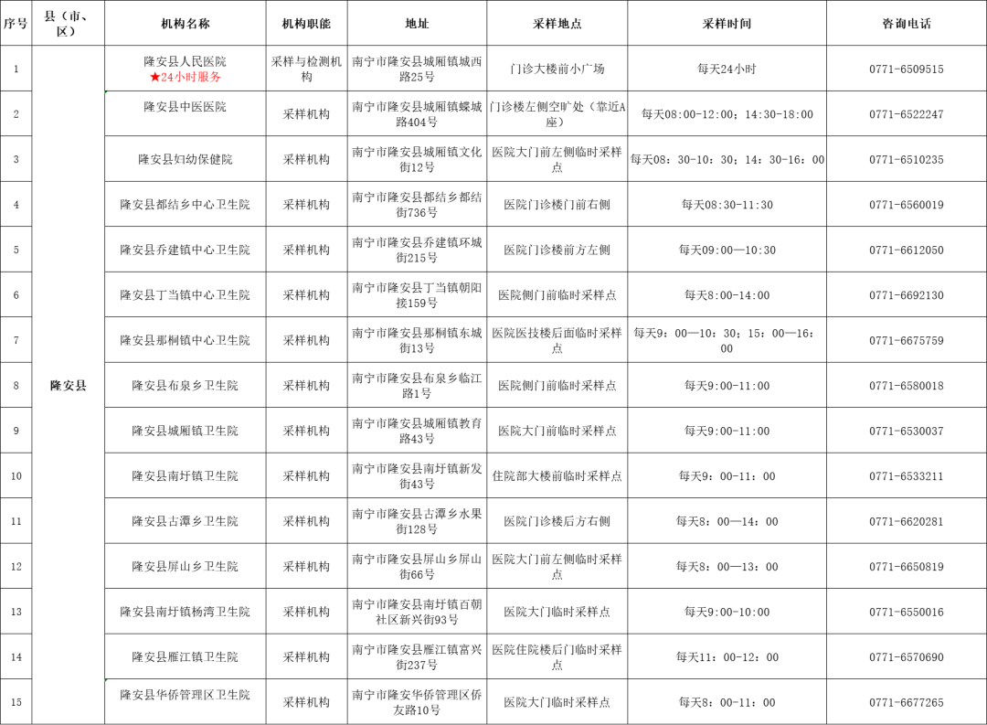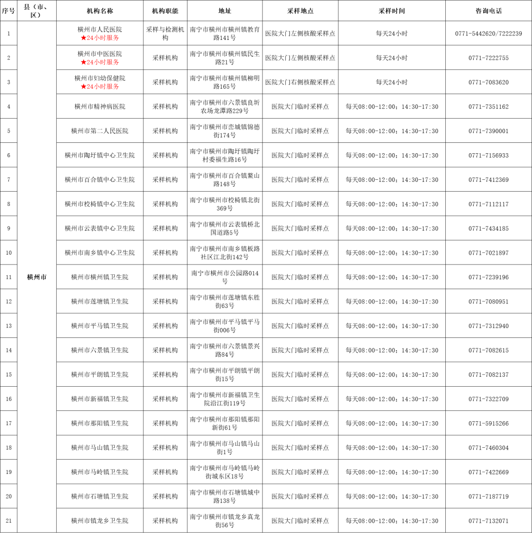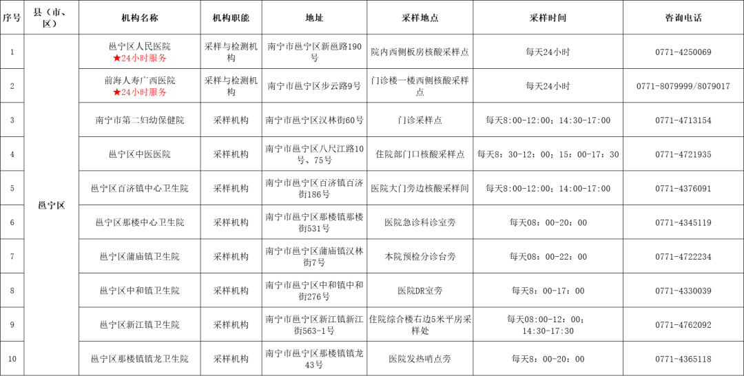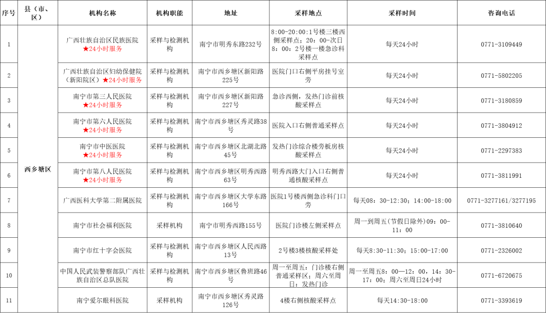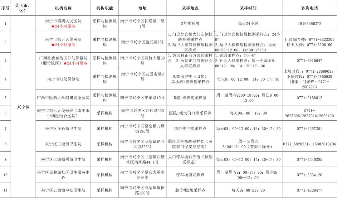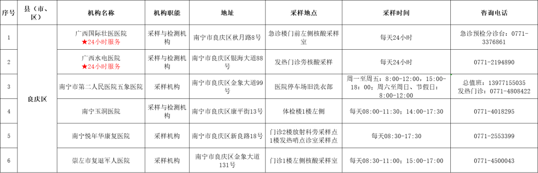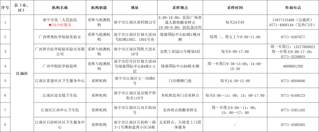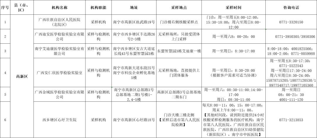 收藏!广西各地核酸采样和检测服务点信息查询表