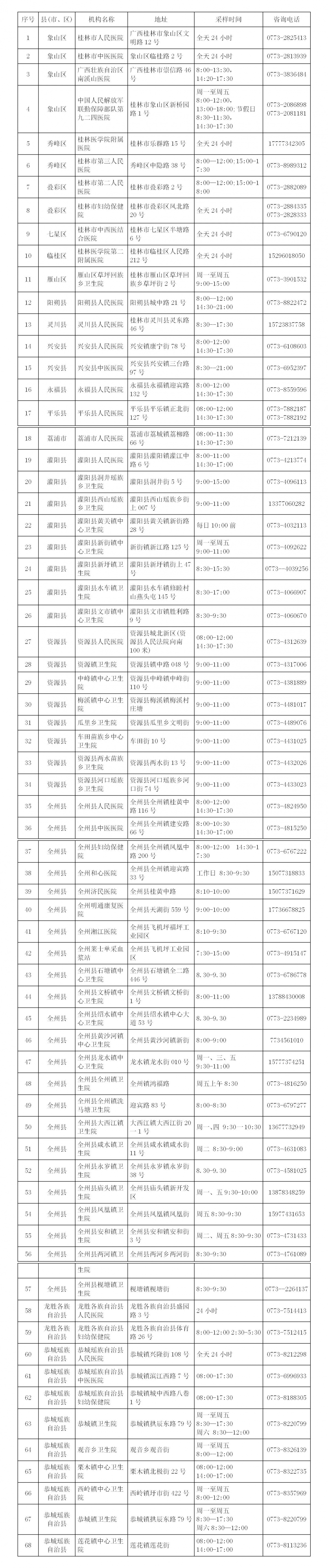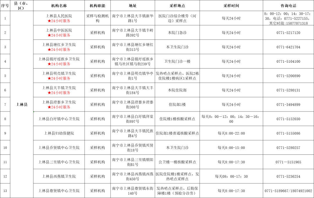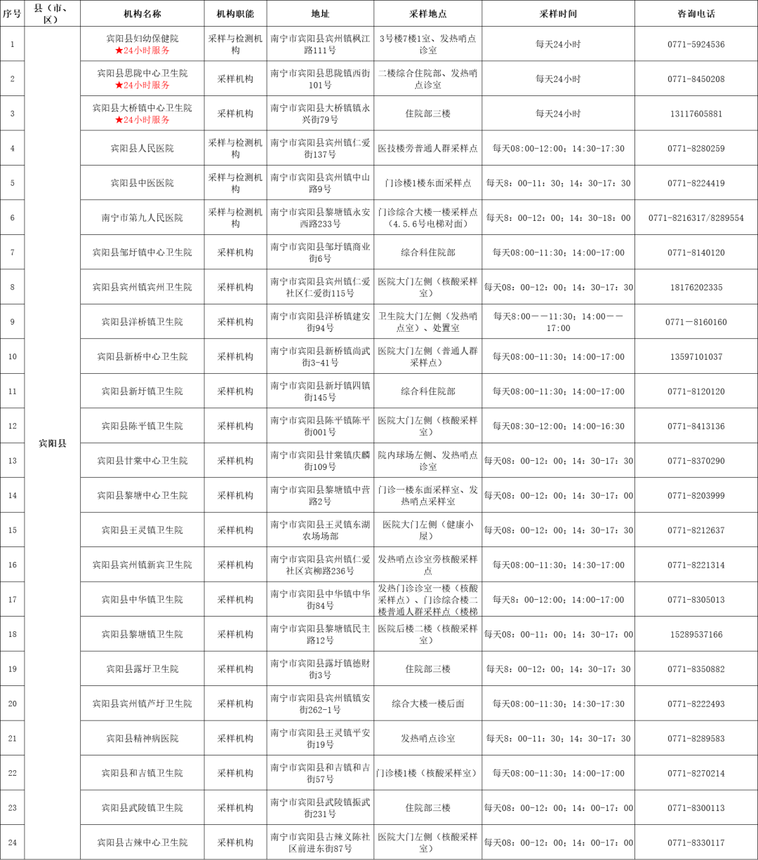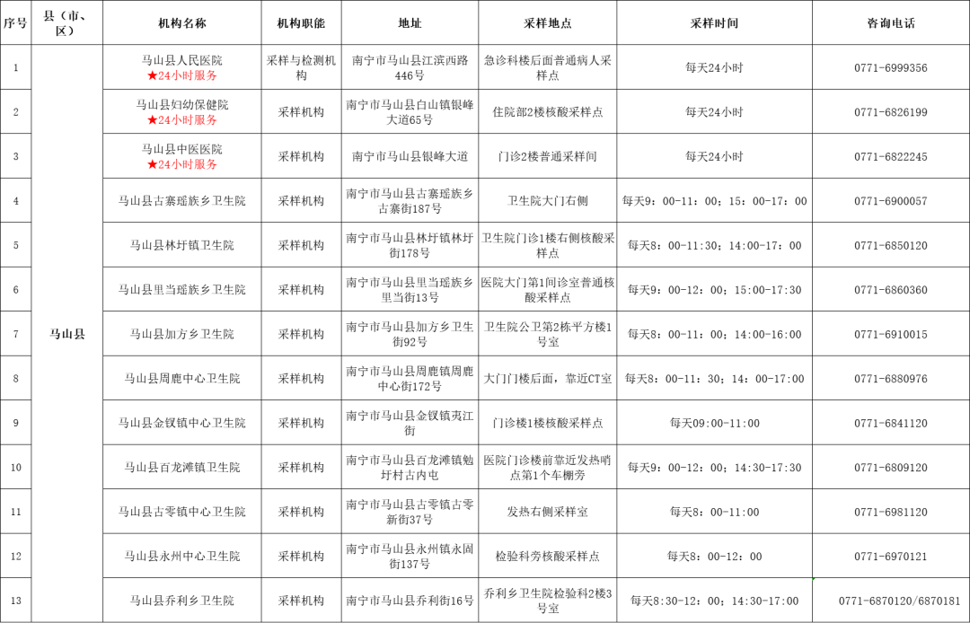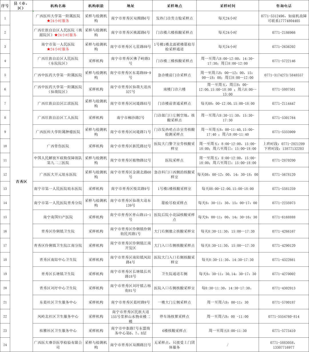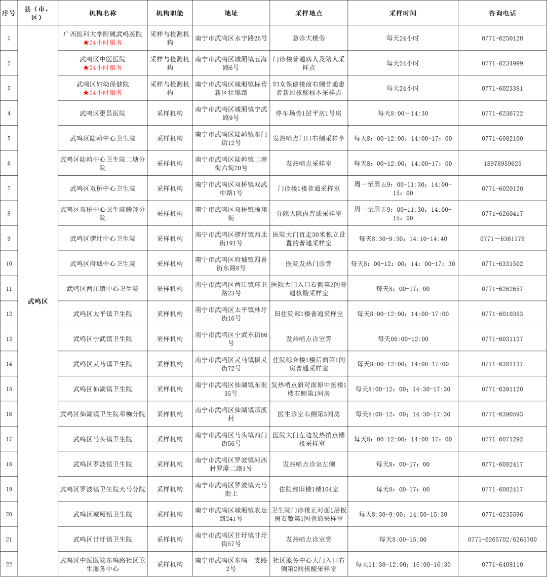 收藏!广西各地核酸采样和检测服务点信息查询表