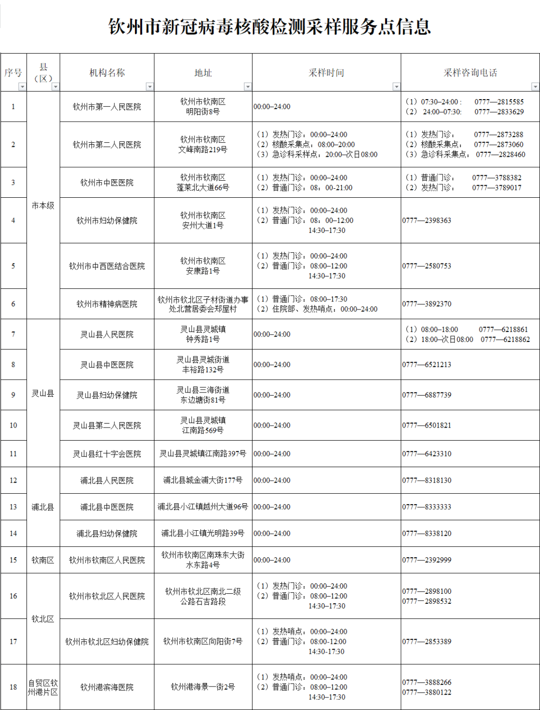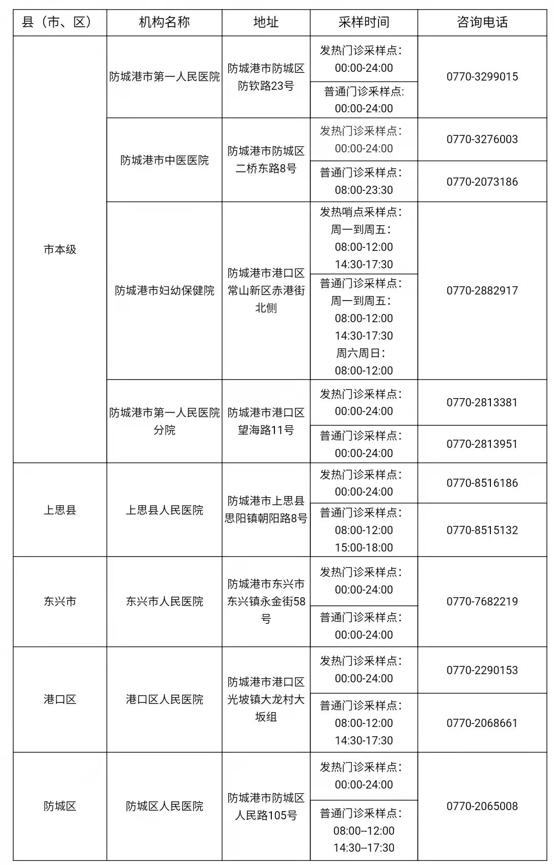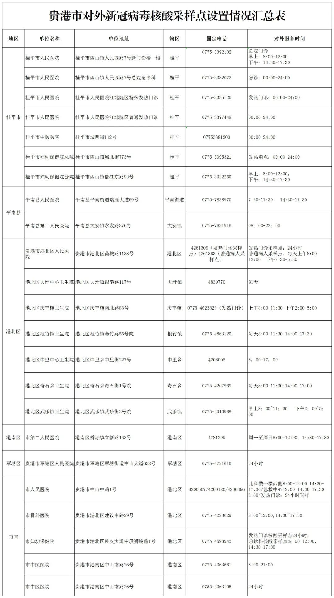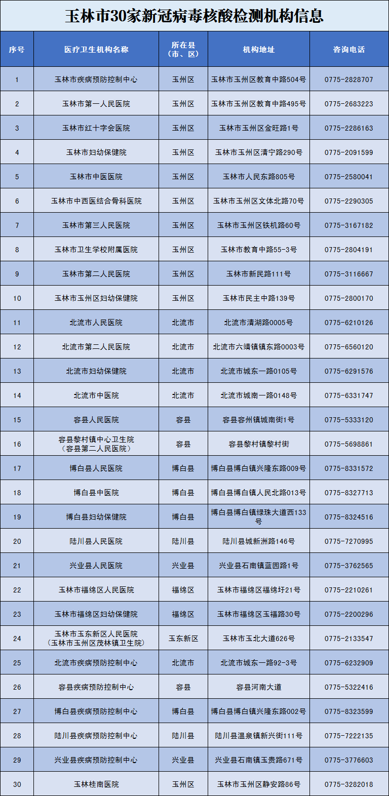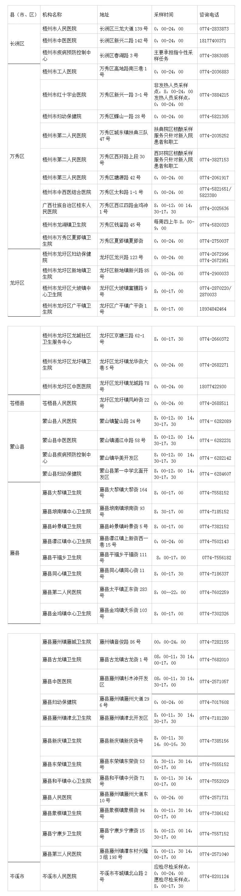 收藏!广西各地核酸采样和检测服务点信息查询表