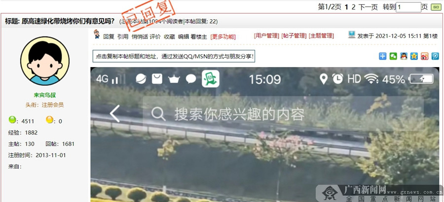 12月10日,来宾市城市管理局对《原高速绿化带烧烤你们有意见吗?》一帖进行回复:
