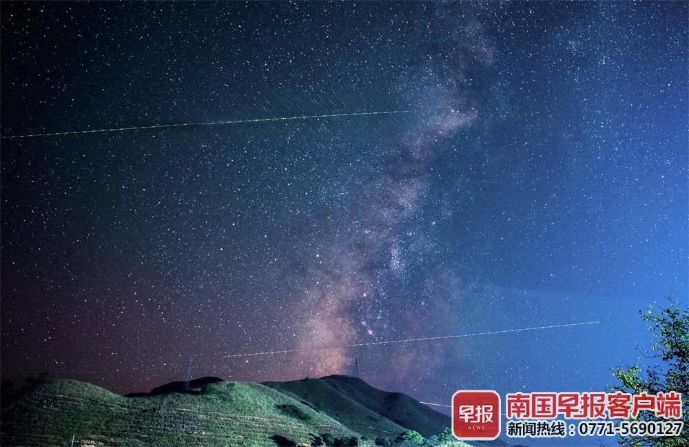 ▲2019年八九月份在桂林龙胜各族自治县南山上,夜空中流星划过。南国早报客户端见习记者 游拥军 摄