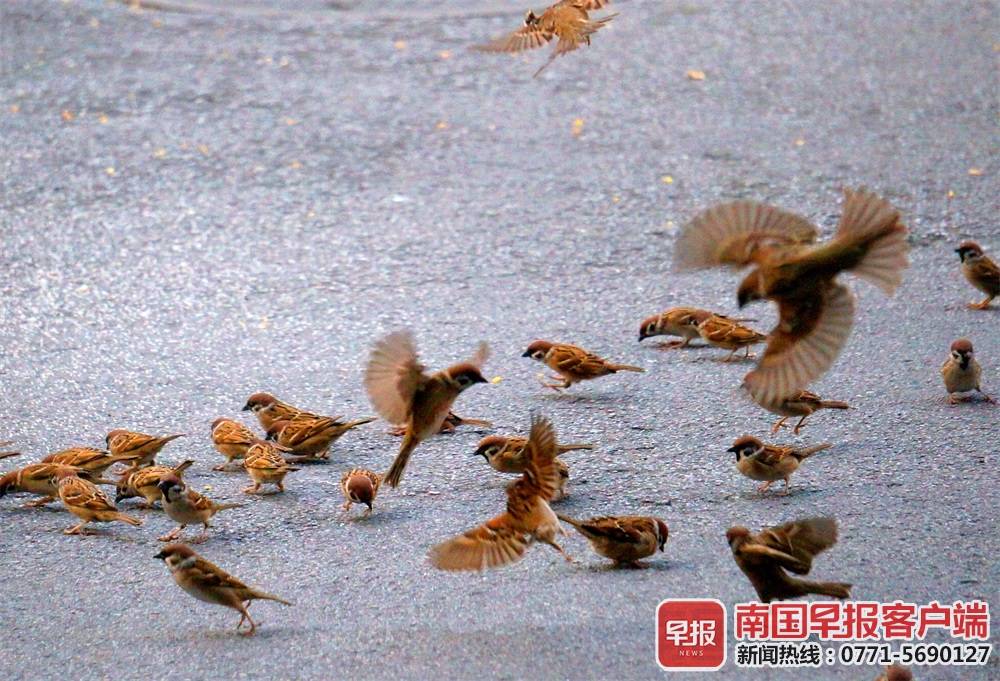有意思!南宁这个小区,一群麻雀定时来觅食