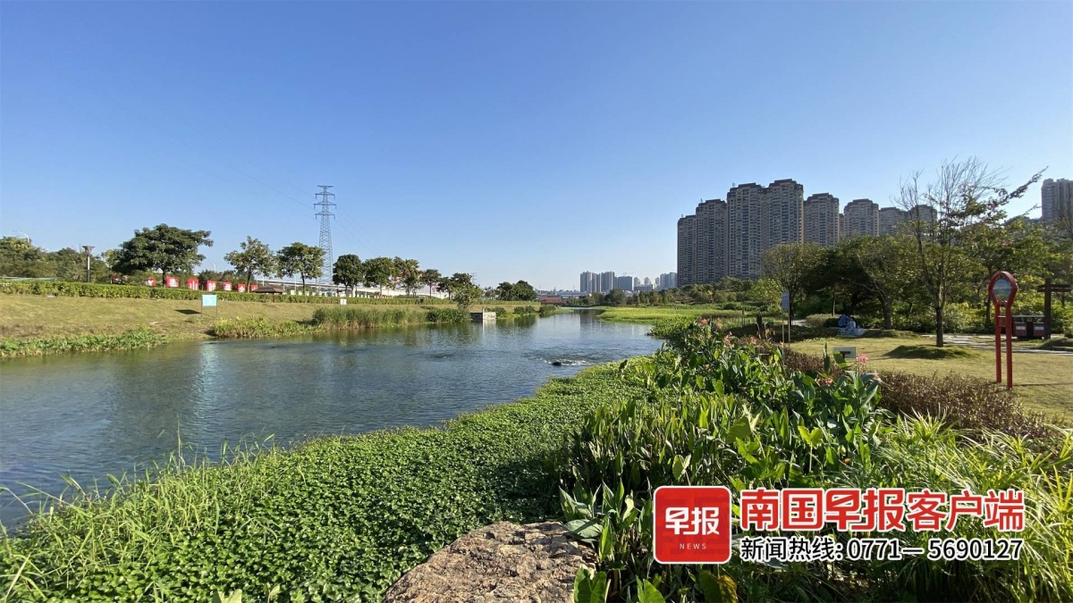▲冬日的那考河公园碧水蓝天。南国早报客户端见习记者 尹世斌 摄