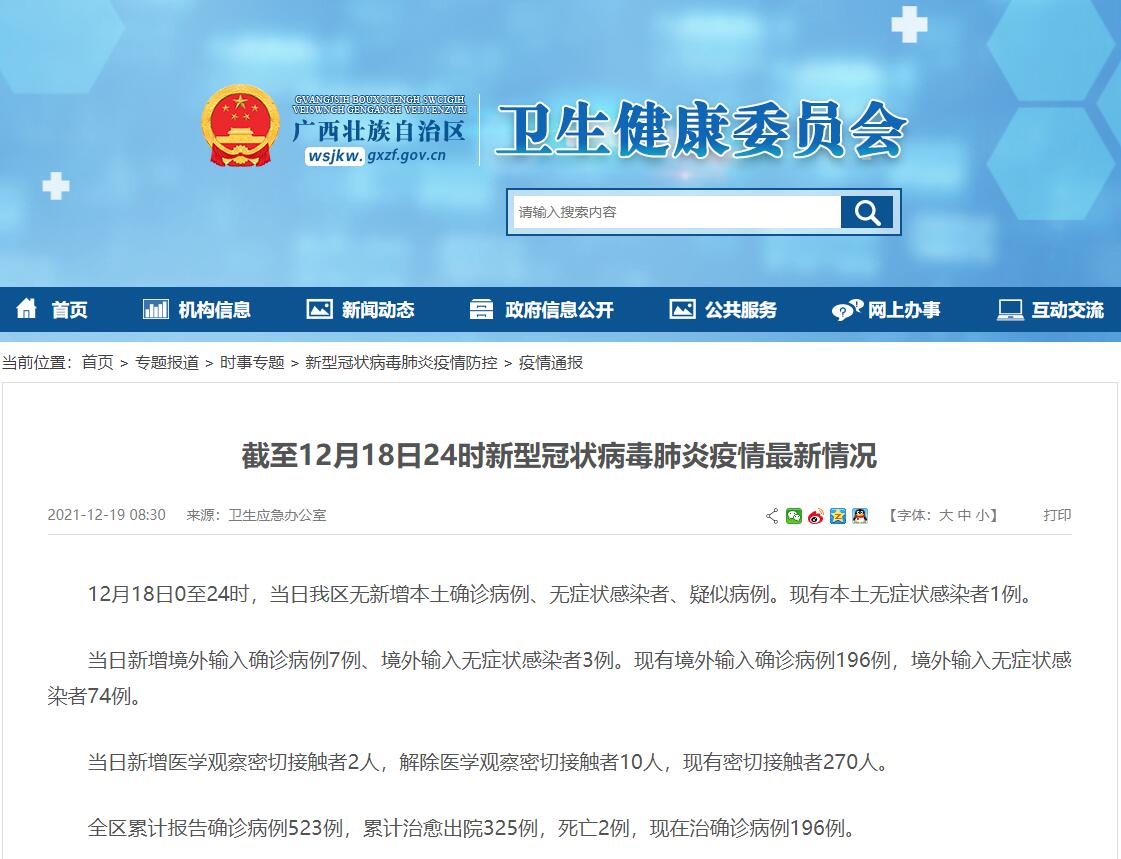 12月18日广西新增境外输入确诊病例7例