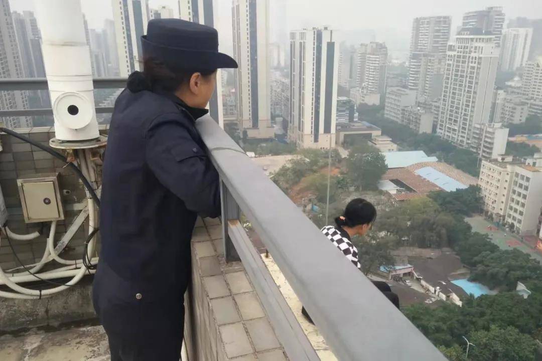 民警到达现场后,为防止意外,在楼下拉好警戒线。在26楼楼顶,民警发现一名年轻女子坐在天台边缘,脚已经伸出天台外,随时有坠楼的危险。情况十分危急,民警当即与该女子沟通稳住其情绪。