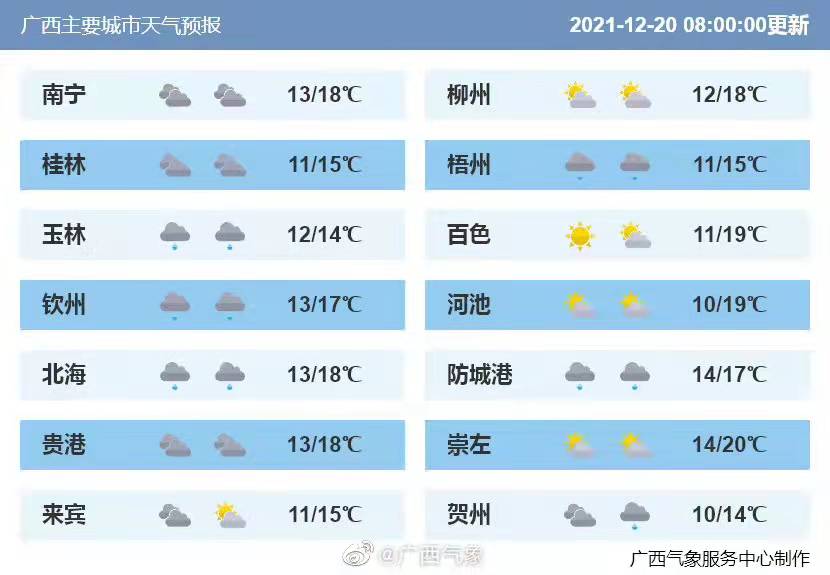 21日,桂东和沿海地区阴天部分地区有小雨,我区其它地区多云到阴天。