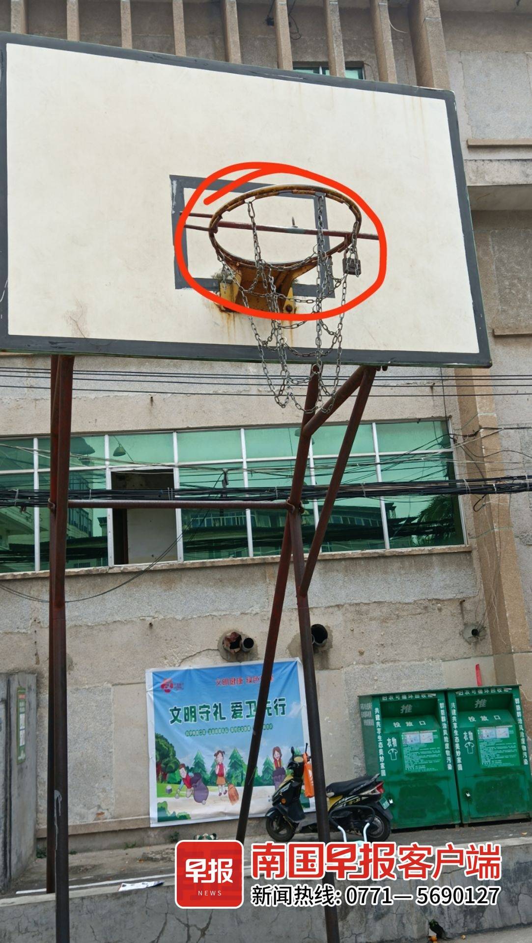 南宁一小区篮球筐被“五花大绑”,管理方:实属无奈之举