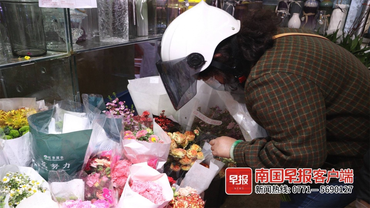 ▲一市民正在花店内选购鲜花。