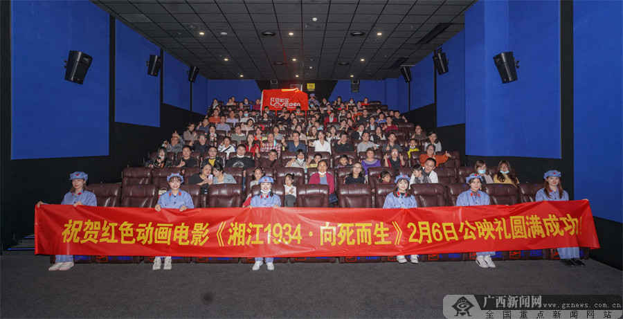 红色动画电影《湘江1934·向死而生》是在自治区党委宣传部的指导下,由广西日报传媒集团、清大知好乐教育科技有限公司、广西千年传说影视传媒股份有限公司联合出品,中共桂林市委宣传部、广西新闻网联合摄制,于2019年取得公映许可证。广西日报传媒集团分别在北京、南宁和桂林举行了首映式、点映式和观影座谈会,电影得到党史、军事、影视、学界人士、红军后代的高度评价,超过20名红军后代参加了活动,50多家全国主流媒体对影片进行了广泛宣传;2020年,主办方组织了300多场校园巡回放映活动,同时在部分科技馆进行固点播放,结合各学校观影开展“湘江战役”精神红色主题教育班会课,组织观影征文活动,进一步掀起青少年学习红色文化的热潮;电影于2021年2月在全国院线进行公映,各机关企事业单位组织广大党员、干部、职工包场观影,在全社会形成党史学习教育的浓厚氛围。在传播渠道上,联合各新闻网站、微信视频号、新闻客户端、电视台等平台形成宣传合力,授权电影在腾讯视频等商业平台播放,全平台点击量超1200万次。